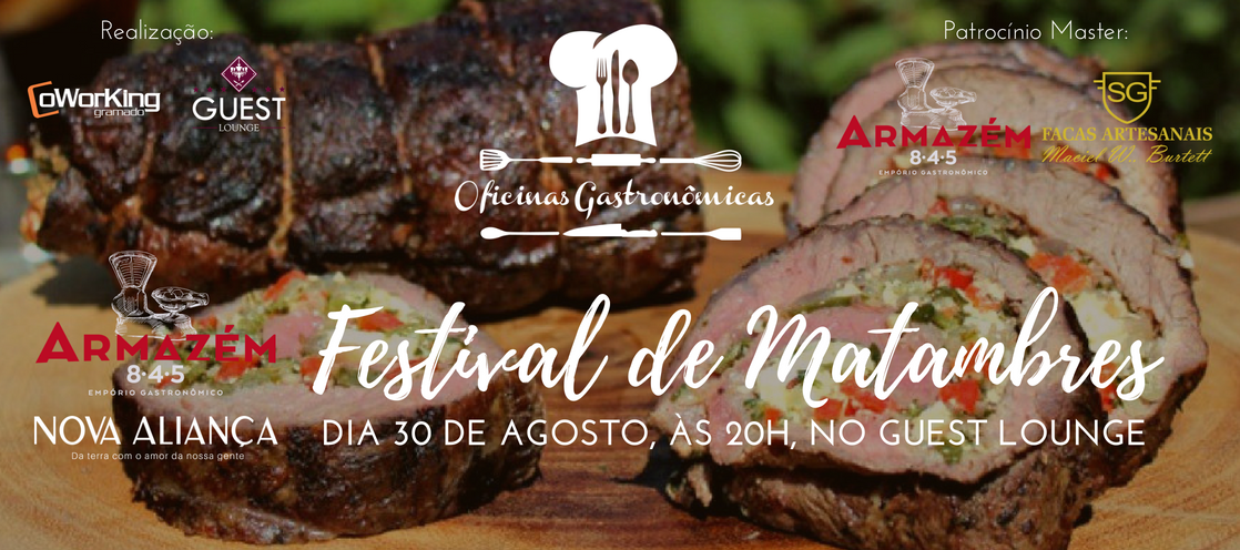 A edição de Agosto das Oficinas Gastronômicas é especial para os amantes de carne. Em parceria com o Coworking Gramado e a Vinícola Nova Aliança, o Armazém 845 promove um verdadeiro Festival de Matambres! Agora as oficinas ocorrerem no Guest Lounge, no centro da cidade junto ao Gramado Tênis Clube, facilitando o acesso de todos os nossos convidados.